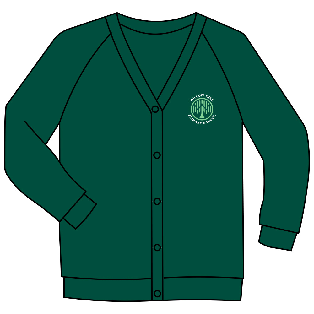 - Green sweatshirt/cardigan with or without school logo